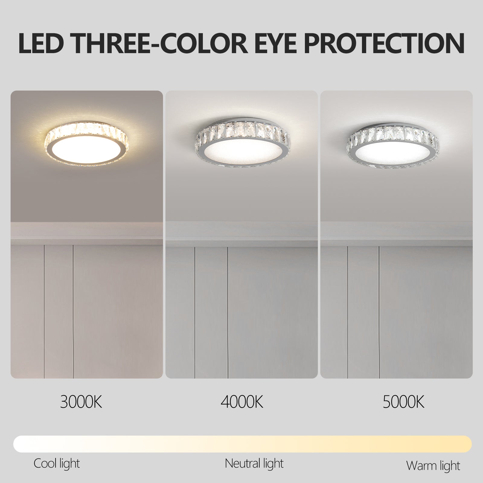 3 color temperatures - This ceiling light is available in 3 color temperatures, warm white (3000K), natural white (4000K), and daylight white (5000K).
